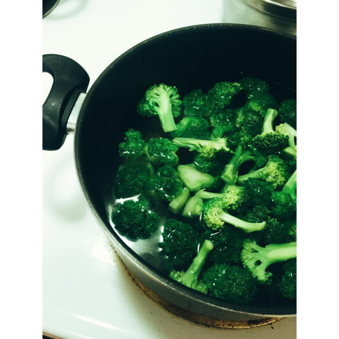 先將清洗好切好的綠花椰菜放入滾沸的鹽水中川燙(不要燙太久才能保持爽脆的口感噢)