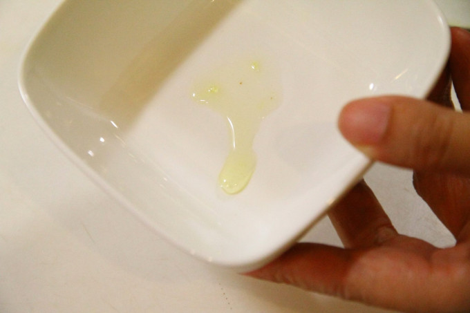 2. 用一點點放在碗盤中 左右輕輕晃一下 不太容易流動就代表好了 如照片這樣