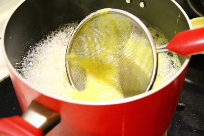 煮到十五分鐘左右 就會產生渣 要記得用乾淨的濾網撈起來