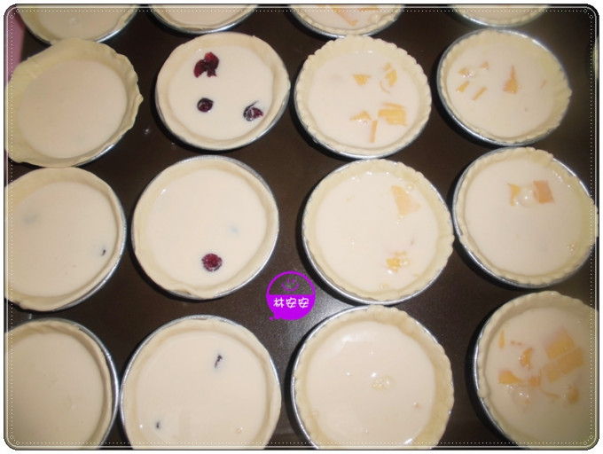 安安烤溫參考:220度烤15分,上火轉200度下火一樣220度再烤10分鐘。(烤至表面略上色,塔皮酥脆即可)。