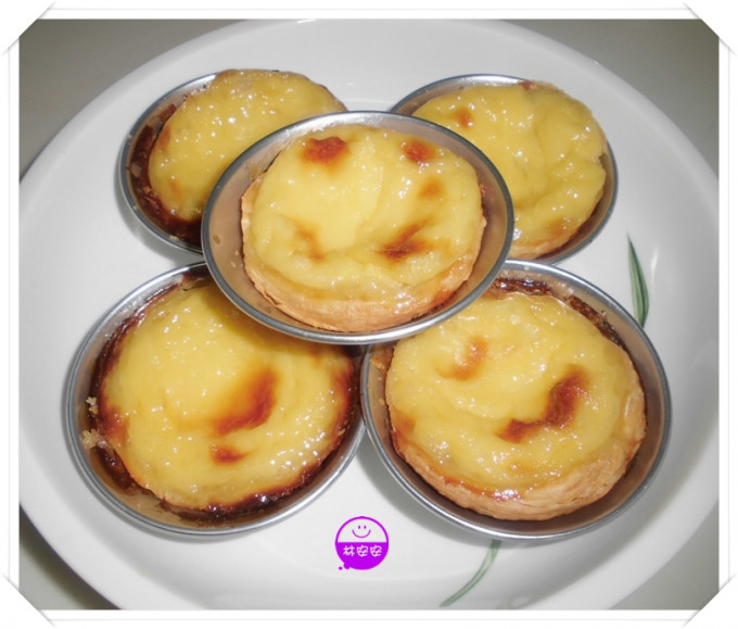 原味葡式蛋塔成品展示(烤至表面略上色,塔皮酥脆即可)。