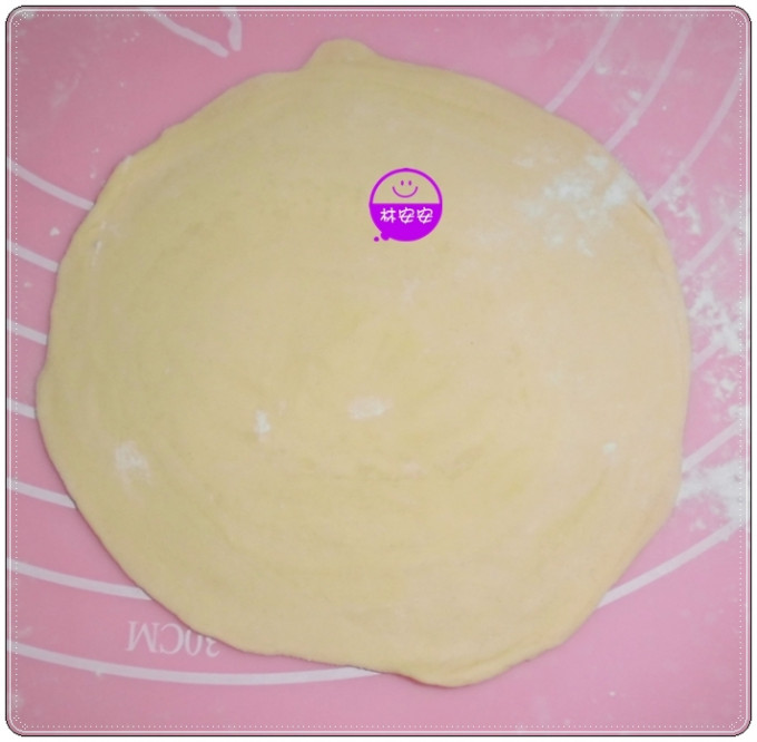 揉麵墊上灑些手粉(安安用高筋),將剝好的起酥片,桿成直徑約10公分的圓(塔皮)。