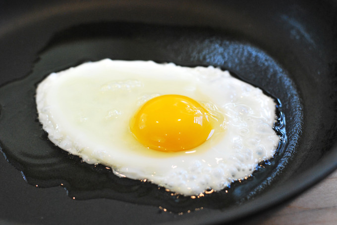 取平底鍋加入適量橄欖油,將雞蛋煎成太陽蛋
