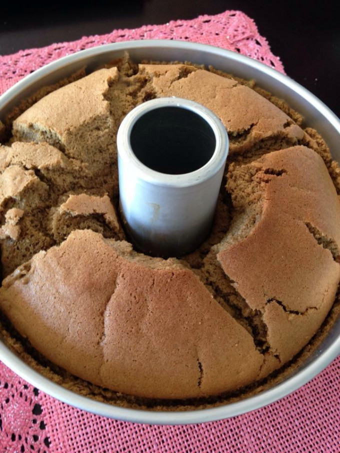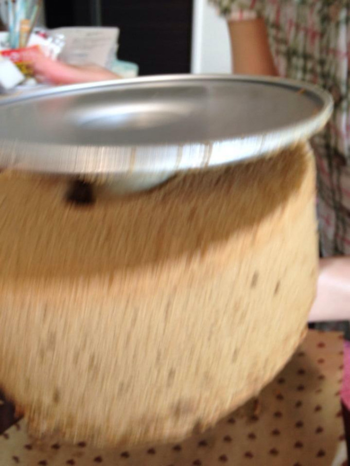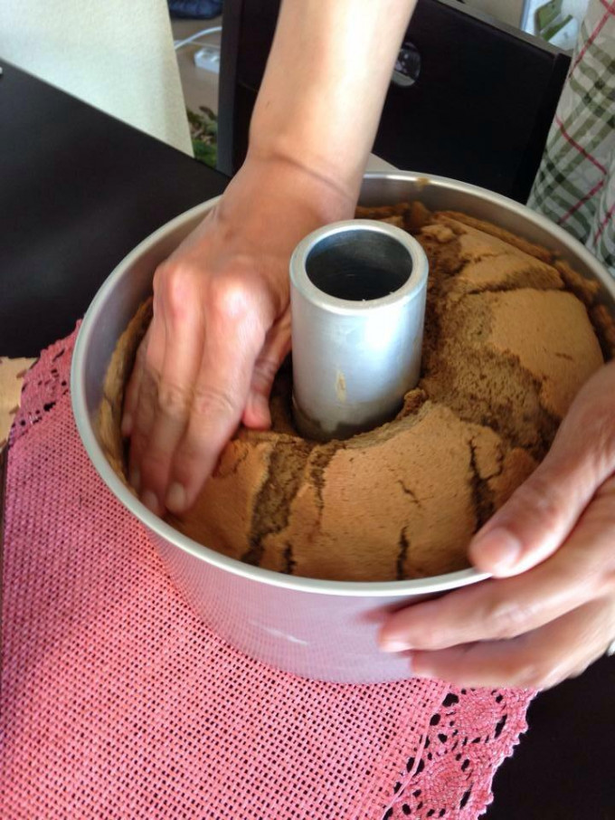 拿出來之後馬上倒扣放涼至少3小時。待熱氣消退之後,套上塑膠袋,下面封好,倒扣至涼(以免乾燥)。這是放涼後的照片。