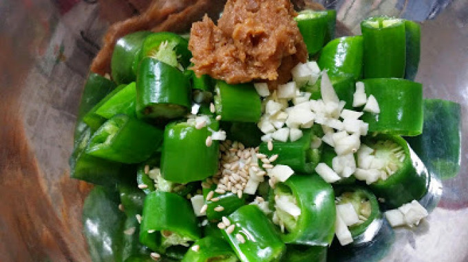大家可以試試看這道簡單又快速的涼拌大醬辣椒된장오이고추무침。