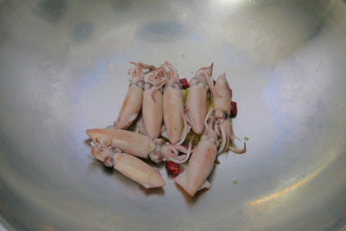 燒一鍋熱水,水滾後加入少許鹽巴,熄火,放入熟小卷浸泡2分鐘,再撈起瀝乾備用。