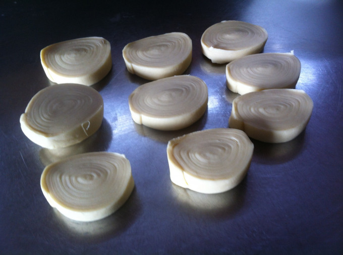 將冷藏好的麵團切成約1公分厚的麵團