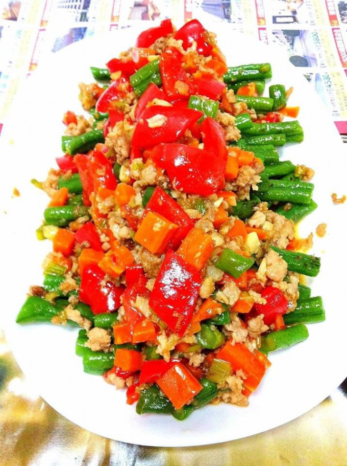 這是一個創意料理~光炒長豆覺得很單調加了紅紅橘橘顏色就更豐富了~~