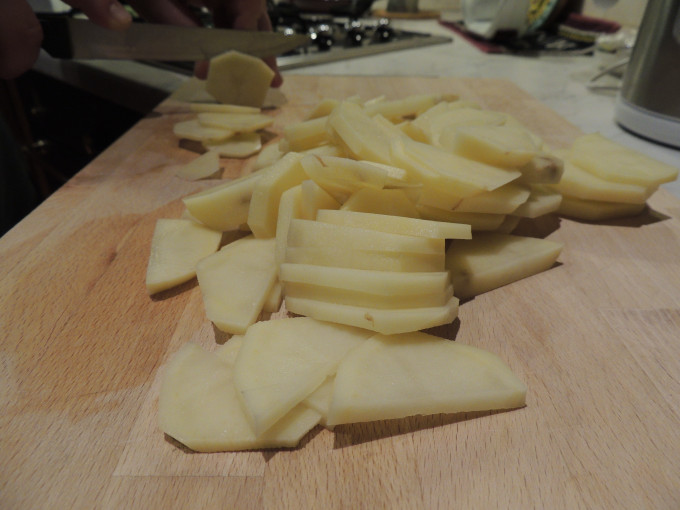 馬鈴薯,紅蘿蔔去皮切薄片,備用。
