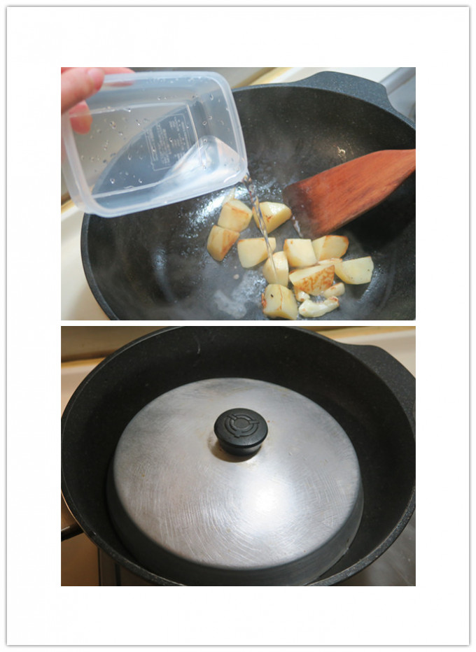 灑點水約1匙.蓋上鍋蓋(馬鈴薯中間較難熟)