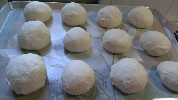 將麵糰分成8份,揉成圓形,再次發酵10分鐘。