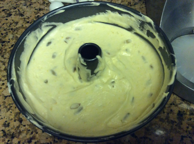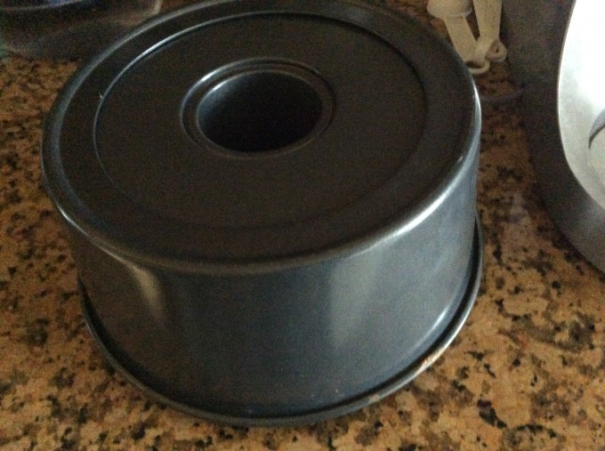 倒入底部鋪上烘焙紙的9吋中空活動烤模,輕敲二下震出大氣泡。350°F烤約25-30分鐘。