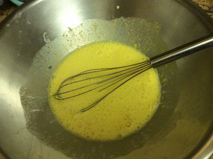 蛋黃先用打蛋器打勻,加入南瓜泥一起拌勻後,加入鮮奶、沙拉油、君度酒拌勻。