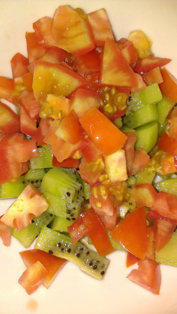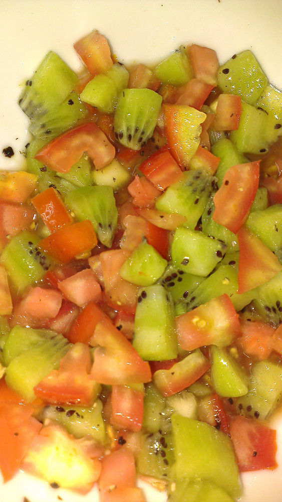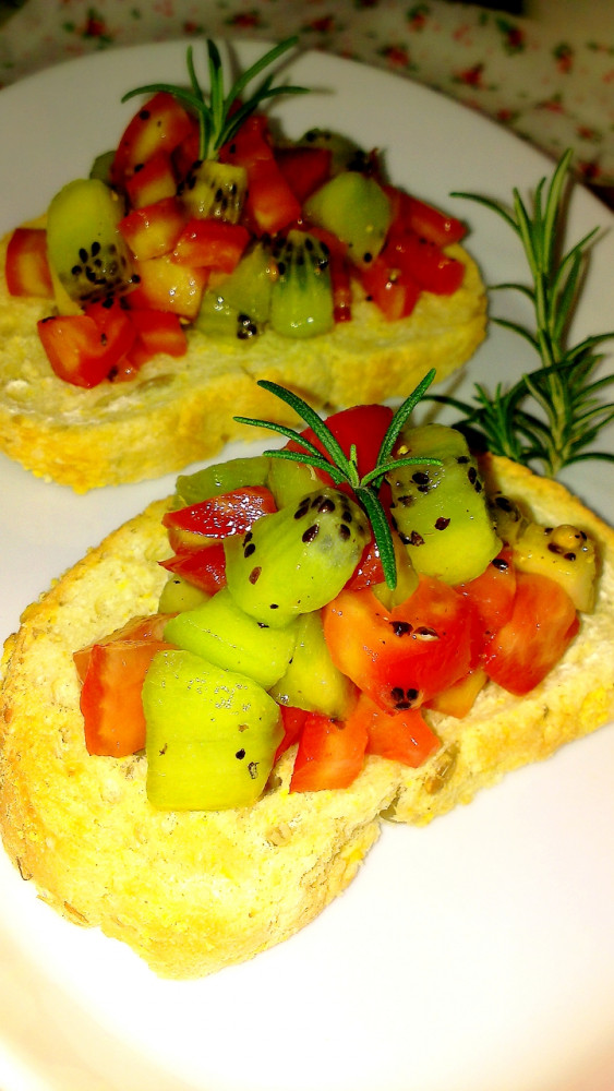 法國麵包切片,略烤酥脆後,放上調好的果丁即可。