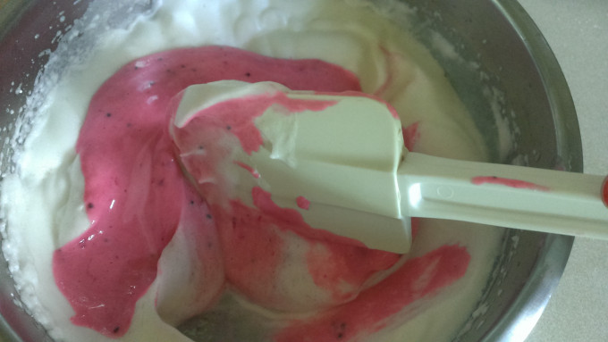 將蛋黃、蜂蜜、優格與火龍果泥拌勻