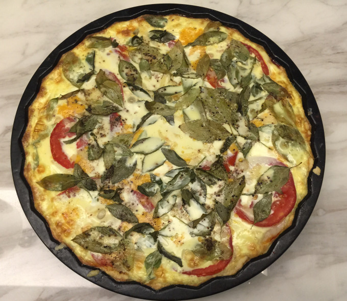 將鹹派放入烤箱烤25分鐘左右,蛋奶醬汁凝固即可;放涼約10分鐘即可切片享用