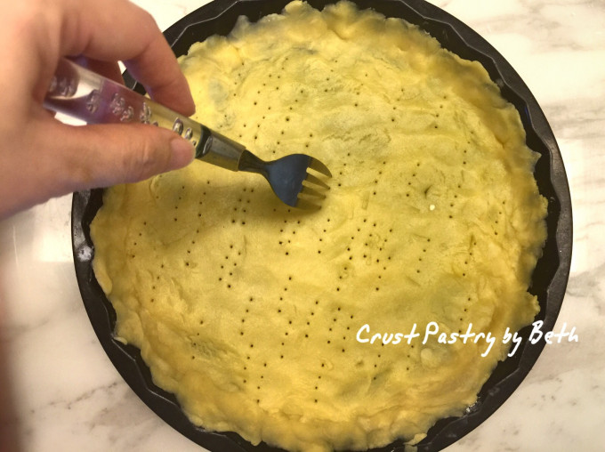 將蛋奶醬汁倒入6,撒上鹽、黑胡椒粉