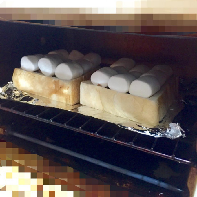 放進烤箱 180度 我是差不多8分鐘啦 可以自己抓一下時間 棉花糖上色就可以