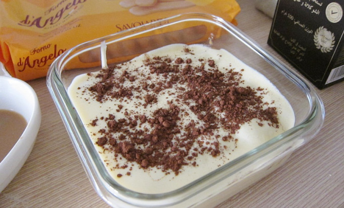 重覆一層餅乾、一層起士奶醬、一層可可粉……喜歡舖幾層就舖幾層。
