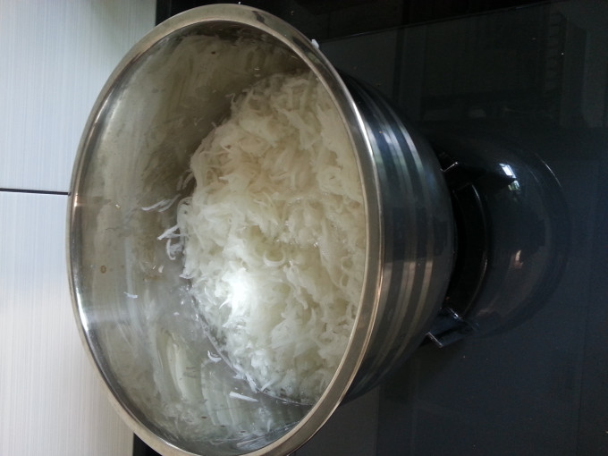 萝卜丝也加800ml水煮熟和软,会变得得有点透明.
