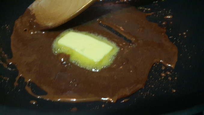 完全融化後.加入奶油拌勻(此時若溫度太高怕焦底可關火)