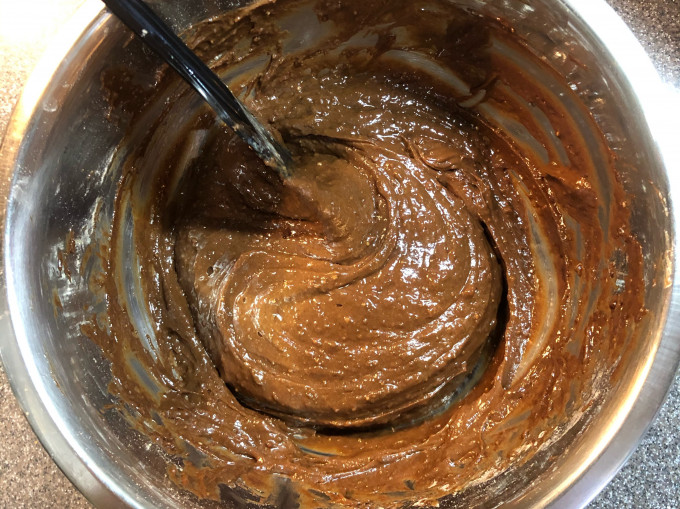 將所有粉類過篩, 分次少量拌入攪拌融合至看不見粉粒。
