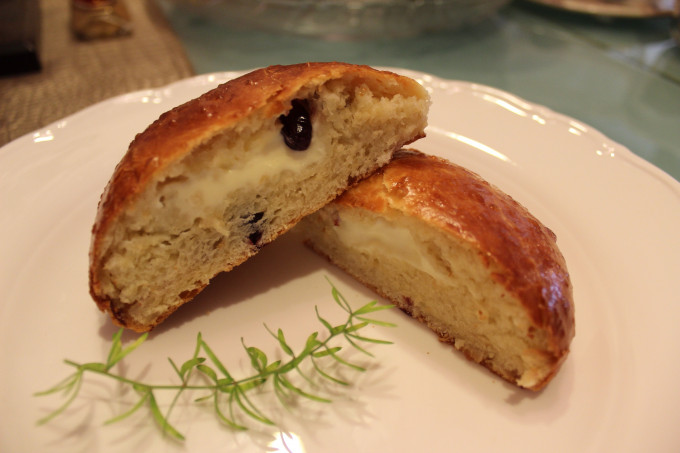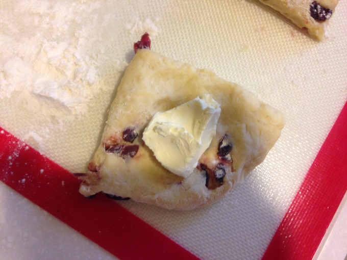 奶油奶酪分成25g為1等份,包入麵團中
