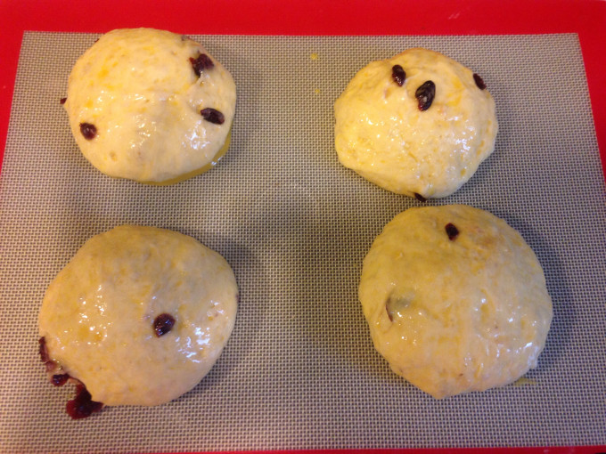 放入沒有加熱的烤箱靜置發酵1小時(發酵至2倍大),發酵完後,表面刷上蛋液(份量外),烤箱180度烤20~25分鐘