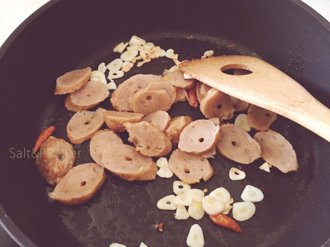 食材準備。除了便利店關東煮黑輪之外,也可使用類似風味的甜不辣。