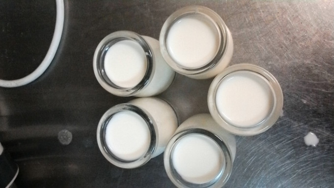 把牛奶跟優酪乳攪拌一下,讓它均勻
