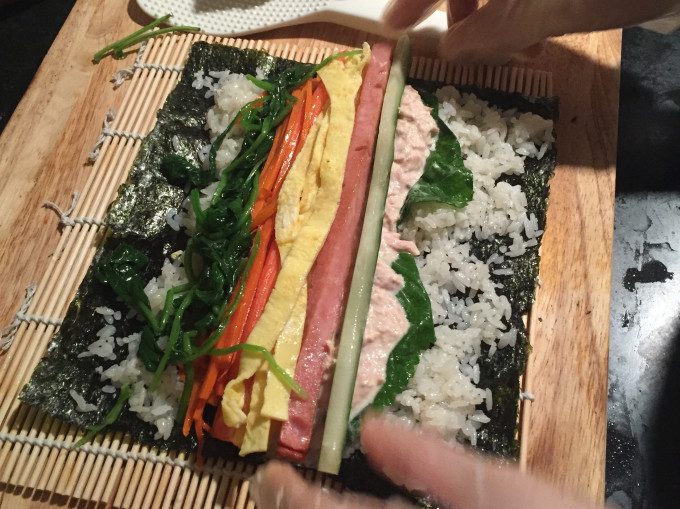 先把材料備齊,火腿及蟹肉棒退冰,同時洗3杯半的米煮成熟飯 (三杯半的米大概可以做10-11個紫菜包飯)