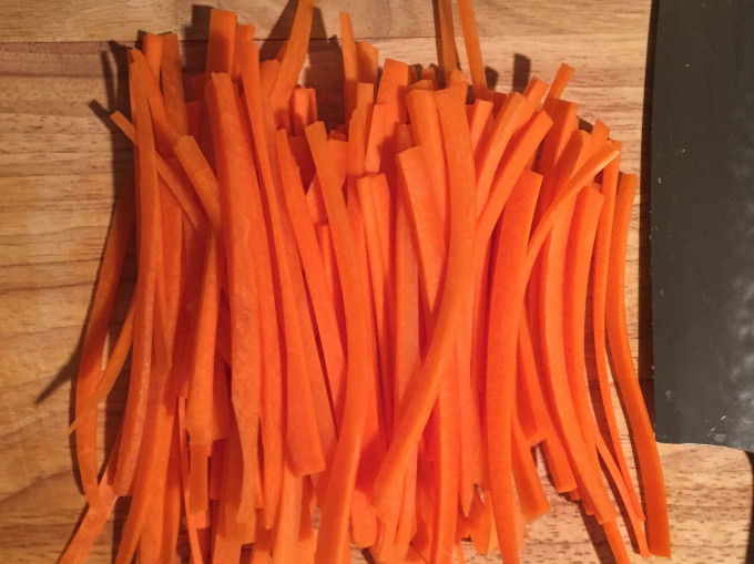 等飯煮熟時我們可以先被材料, 先將紅蘿蔔削皮切絲放一旁備用