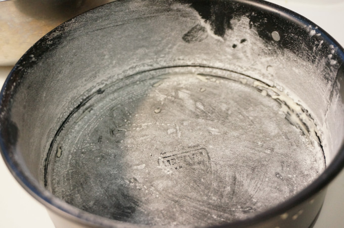 取1個 6吋模刷上適量奶油後四周沾低筋麵粉。