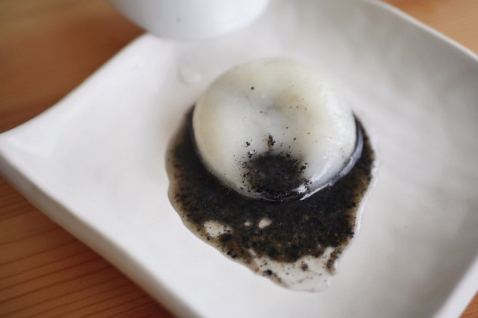 揉芝麻內餡:冷藏半小時後的芝麻餡變得硬了,用湯匙挖一勺然後先用手指頭剪成圓形,用手指搓圓,手指接觸的面積小可減緩豬油太快融化,接著再用掌心揉成圓球狀,待全數揉圓,送入冷凍庫冰上一小時,芝麻內餡愈硬愈好包。