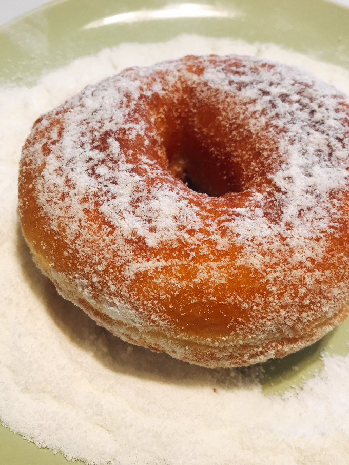 好吃的甜甜圈就完成了,如果一下子吃不完那麼多,可以在吃的時候再來沾糖粉奶粉.