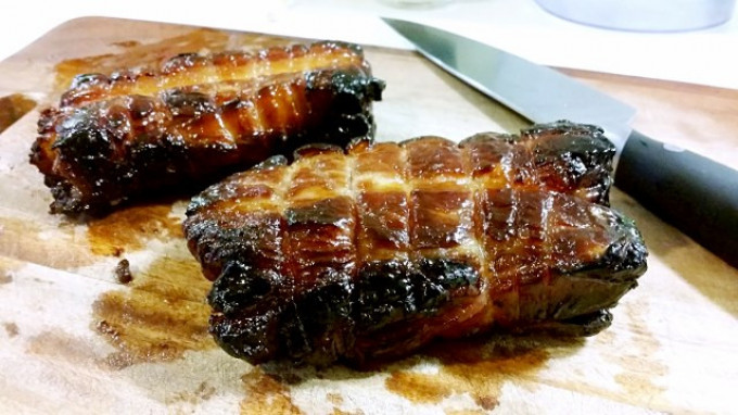 烤箱預熱至170度,肉放烤網上烤45-60分,視肉大小而定 烤箱溫度提高至 200度,續烤10-15分,也是視肉大小烤到表面有點酥脆,焦糖化的感覺就完成了! 取出放涼約 15 分鐘, 肉質緊密, 又更容易切片喔~~ (煮婦分享 tips, 用麵包刀很好切肉喔~)