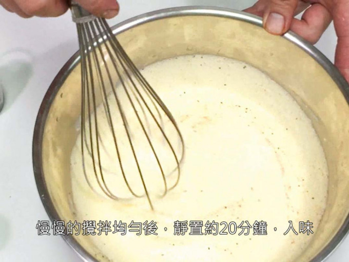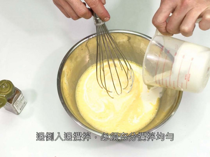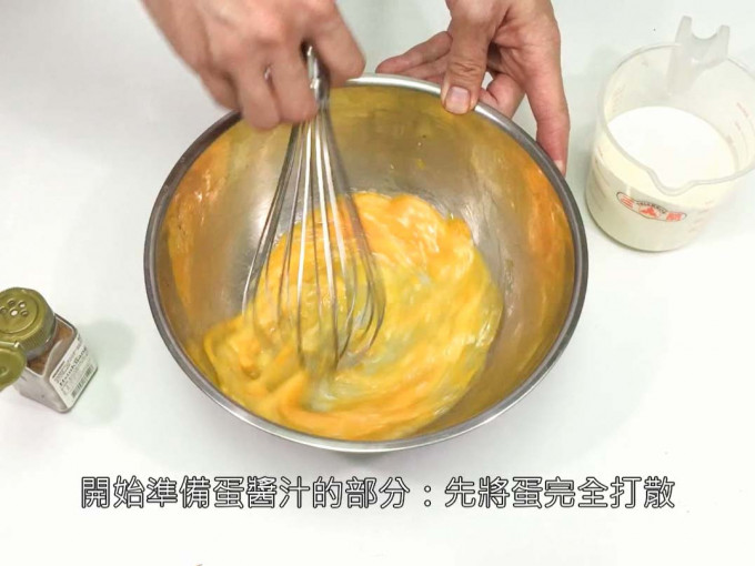 接著開始準備蛋醬汁,先將蛋液打散加入低粉