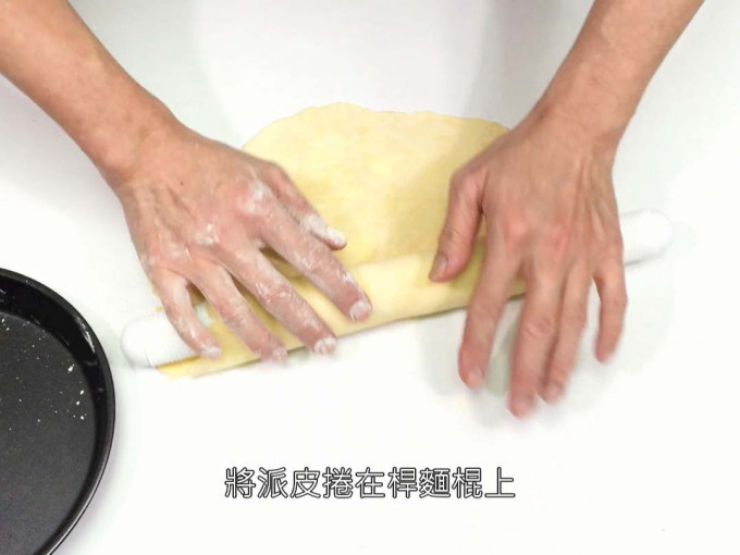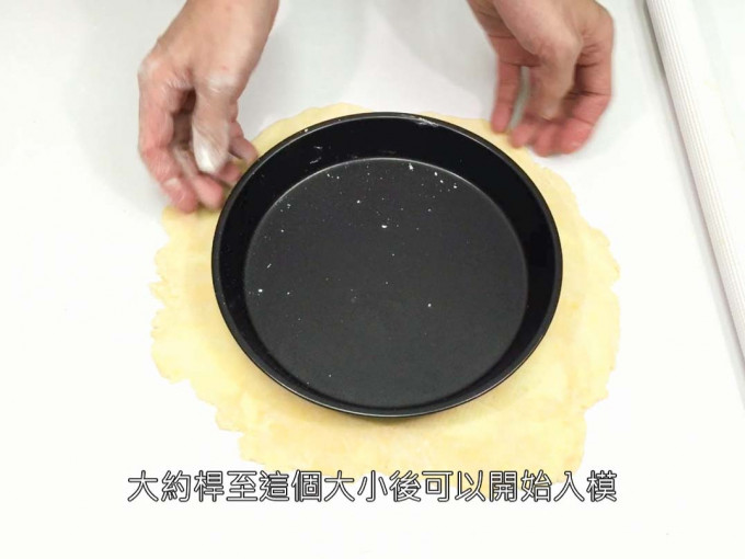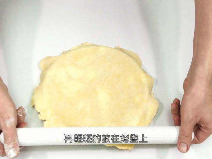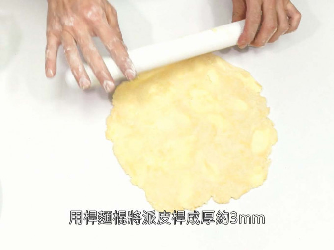 灑一些高粉當手粉,用擀麵棍慢慢擀開