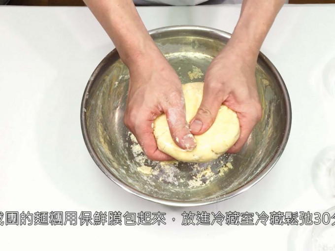 揉成團的麵糰,用保鮮膜包起來,放進冰箱鬆弛30分鐘