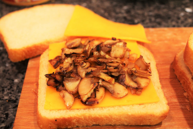 兩片起司中間可夾入其他食材 如: 炒磨菇, 火腿片, 鮪魚,....