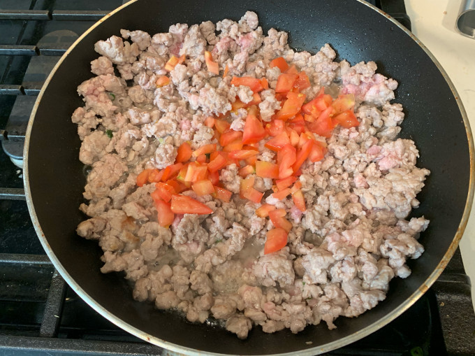 絞肉差不多熟了下番茄,煮到茄紅素有出來