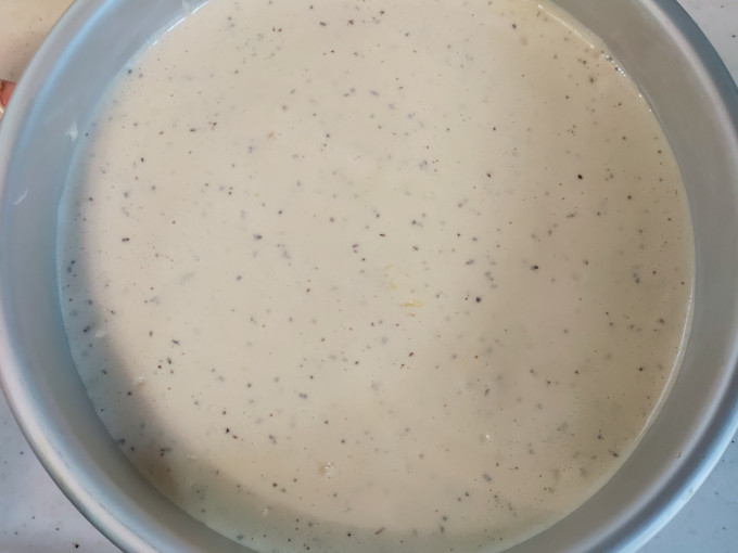 將伯爵紅茶和茶葉加入蛋黃植物油混合液裡,攪拌均勻