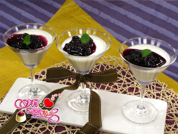 食材 : 吉利丁片, 鮮奶, 細砂糖, 冷開水, 原味優格, 檸檬皮, 檸檬汁, 新鮮藍莓, 細砂糖, 水, 果糖, 香橙酒