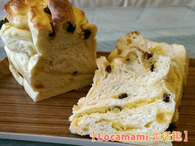 食材 : 地瓜泥, 奶油, 葡萄乾, 高筋麵粉, 鮮奶, 蛋, 糖, 無鹽奶油, 鹽, 速發酵母粉
