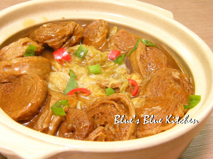 食材 : 大白菜(中小型), 麵輪, 蒜末, 老薑片, 辣椒丁, 醬油, 冰糖, 八角, 米酒, 白醋, 花椒粉, 蒜蓉辣椒醬
