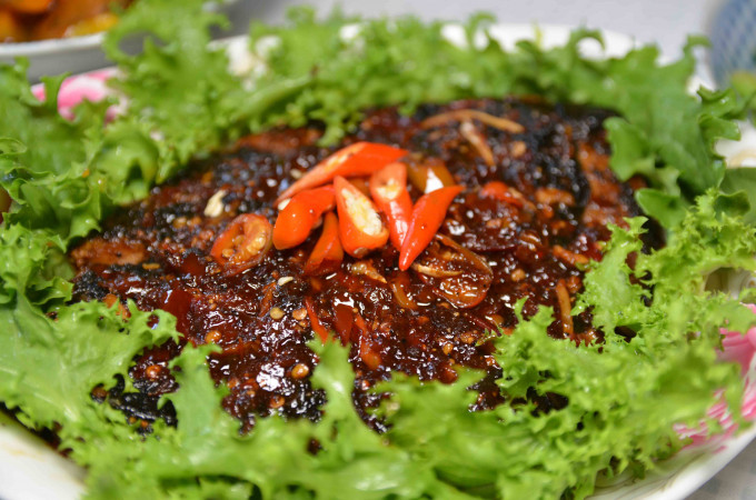 食材 : 素魚, 朝天椒, 薑絲, 辣椒醬, 素蠔油, 糖, 黑胡椒粒