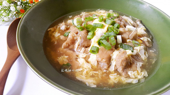 食材 : 筍絲, 紅蘿蔔絲, 木耳, 板豆腐, 白醋(少許), 烏醋, 雞蛋, 火腿, 水, 雞湯塊, 太白粉(少量)+水, 香油, 蔥花, 胡椒粉