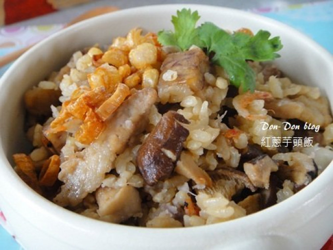食材 : 紅蔥頭, 櫻花蝦, 五花肉, 乾香菇, 芋頭, 白米, 酒, 醬油, 胡椒粉, 醬油, 胡椒粉, 水或高湯