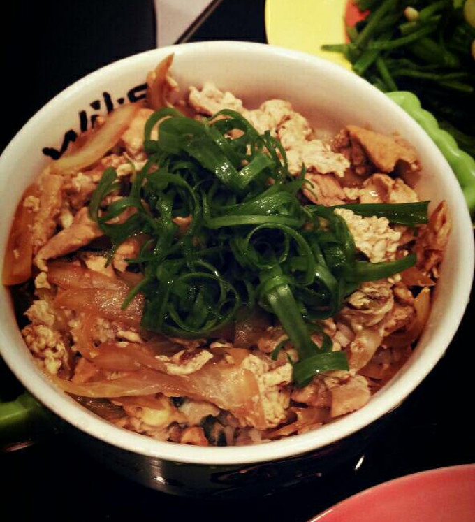 食材 : 白飯, 雞腿肉, 洋蔥(切片), 蔥(切絲), 雞蛋, 清酒, 日式柴魚醬油, 水, 砂糖