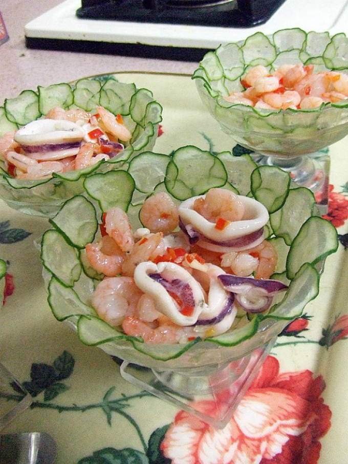 食材 : 小黃瓜, 蝦仁, 透抽, 鹽, 魚露, 辣椒, 檸檬, 糖, 大蒜, 水